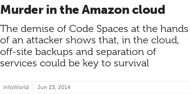In the Summer of 2014, an attacker gained access to the CodeSpaces’s control panel and demanded money in exchange for releasing control back to Code Spaces (see CodeSpaces website as of August 2014).