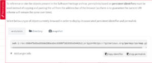 Test it by clicking on this link: you will be brought seamlessly to the Software Heritage archive on a page showing the corresponding source code, with the relevant lines highlighted.